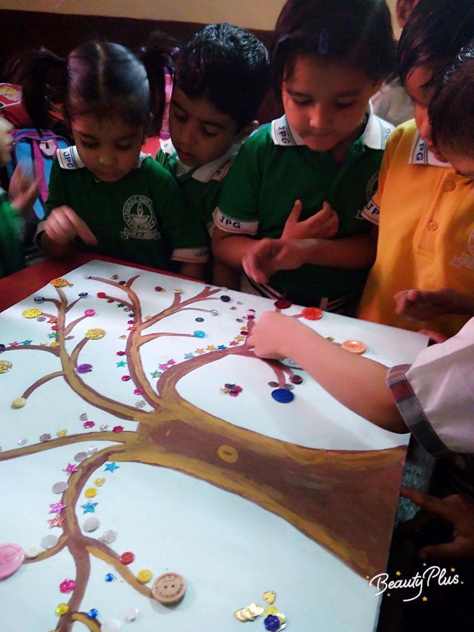 Team spirit & team work , we can see here in the classroom activity performed at JP Gurukul - Pinjore. Art projects provide children with opportunities for expanding their creative expression and imagination as well as discovering aesthetic pleasure from art itself. ..Read More